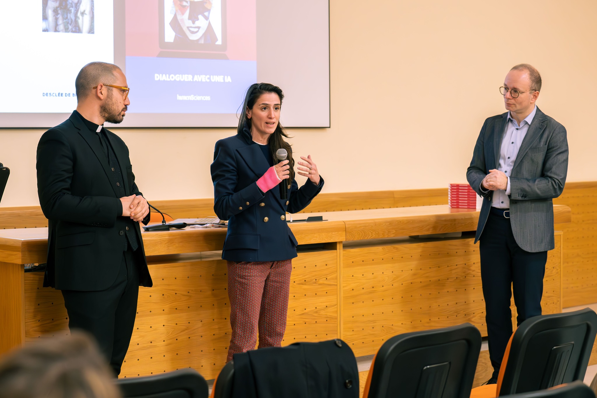 Prof. Alexei Grinbaum deciphered the new era of these new talking machines, which are challenging the monopoly that humans have on linguistic expression. Rev. Dr Jean Gové, research affiliate at Hong Kong University, discussed some of the entirely new challenges posed by AI, including the risks of artificial manipulation and moral deskilling. Founder & creative at Von Peach, Yentl Spiteri, presented her insight and experience using AI as a creative practitioner and founder of a creative hub.